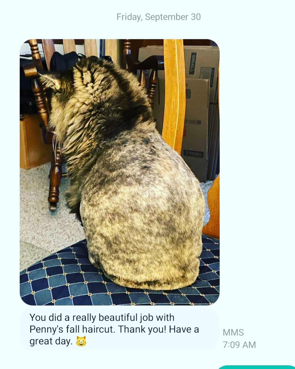 We do have to keep in mind that cats are very different then dogs. Cats are fighters when they get scared. Even though we only try to groom cats when we have a calm, quiet atmosphere, they do tend to pick their own agenda. If it is your cat's first time, please let us know.